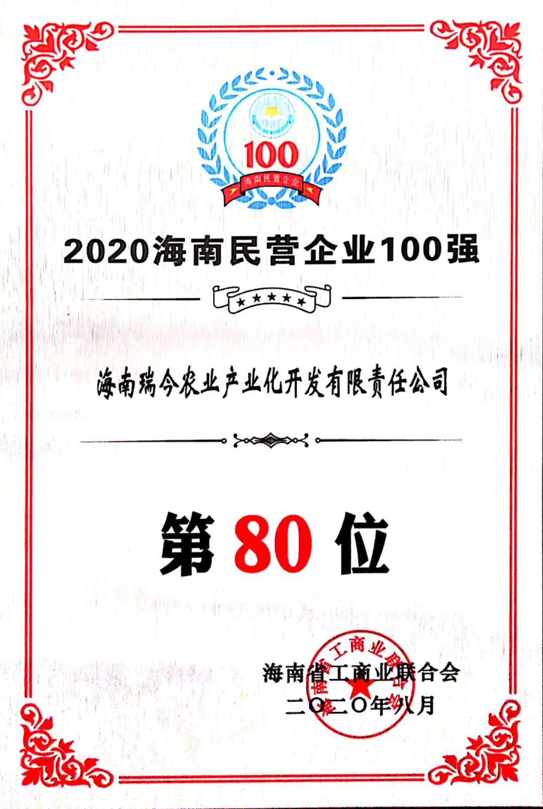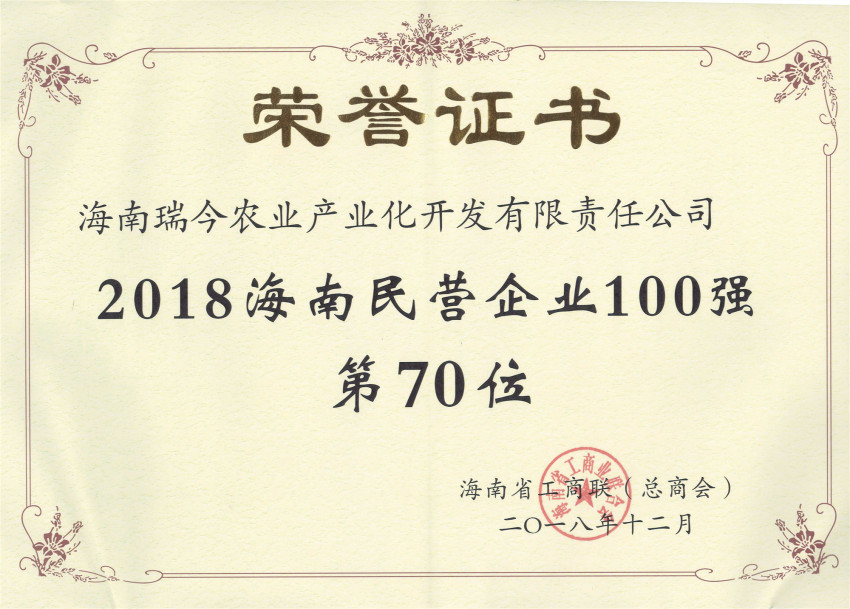 2020-09-16 14:16:058月28日,從海南省工商聯召開的2020海南民營企業百強發布會上獲悉,海南瑞今農業產業化開發有限責任公司被評選[查看詳情]